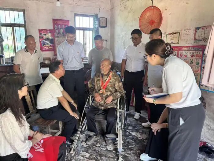 下午,全體黨員前往93歲老兵周立忠家中開展走訪活動。走進屋中,老人身著整潔舊軍裝、佩戴勛章,雖已年過九旬,卻依舊精神矍鑠、身姿挺拔,回憶起當年戰斗經歷時,原本平和的眼神瞬間閃爍出堅定光芒,仿佛重回烽火連天的歲月。“我是17歲當的兵,那時候條件苦啊,吃不飽、穿不暖,但大家心里都憋著一股勁,要把敵人趕出去!”老兵用樸實的語言,將大家帶回那個艱苦卓絕的歲月,每個細節都飽含著對祖國的赤誠和熱愛。當談及曾參與的渡江戰役時,老人更是打開了話匣子,從戰前的緊張準備,到渡江時的驚險瞬間,再到戰友間的相互扶持,將一段段驚心動魄的往事娓娓道來。黨員同志們圍坐在老人身邊,聽得格外專注,不時輕聲追問細節、積極交流互動,大家被他們的英勇事跡和愛國精神所深深打動,更深刻理解了“英雄”二字的背后,是舍生忘死的擔當,是刻在骨子里的愛國赤忱,更是激勵后人奮勇前行的精神力量。